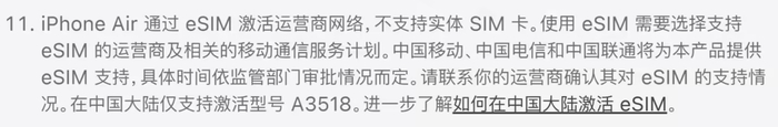此前,苹果中国官网显示, iPhone Air 手机由于eSIM的原因具体发售时间待定。