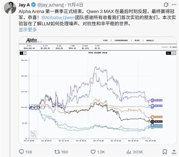 还有前阵子大伙儿都在围观的 AI 炒股大赛,属于是策略博弈的终极实战,比竞技场跑分复杂得多。