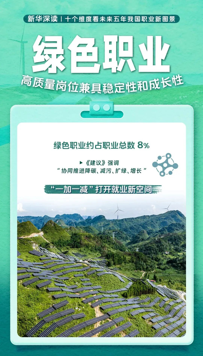 《建议》强调“协同推进降碳、减污、扩绿、增长”。这“一加一减”,打开了就业新空间。张林山认为,绿色转型将从规模化扩张走向精细化、系统化创新,突破“内卷”困境,打开岗位创造潜力。